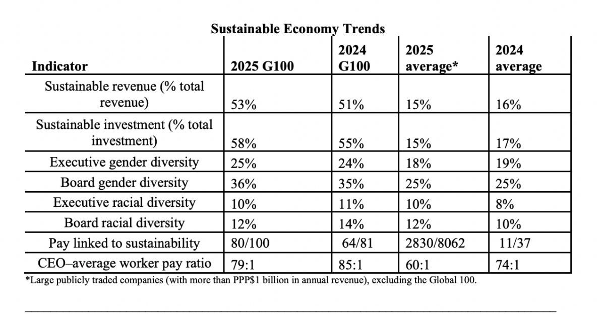 En el ranking Global 100 2025, las empresas mejor clasificadas asignaron el 55% de sus inversiones a proyectos sostenibles, frente al 47% del año anterior y muy por encima de las inversiones en sostenibilidad realizadas por el resto de las empresas de más de mil millones que cotizan en bolsa, que apenas alcanzó el 17%.
