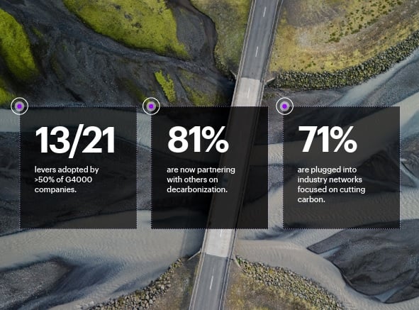 Las empresas están utilizando más herramientas o “palancas” para reducir sus emisiones: en promedio, aplican 13 de las 21 estrategias principales, frente a 11,5 el año anterior. Entre las más extendidas están la eficiencia energética (87 %), la reducción de residuos (87 %), la adopción de energías renovables (81 %), las mejoras en edificios (80 %) y la colaboración con proveedores (79 %).